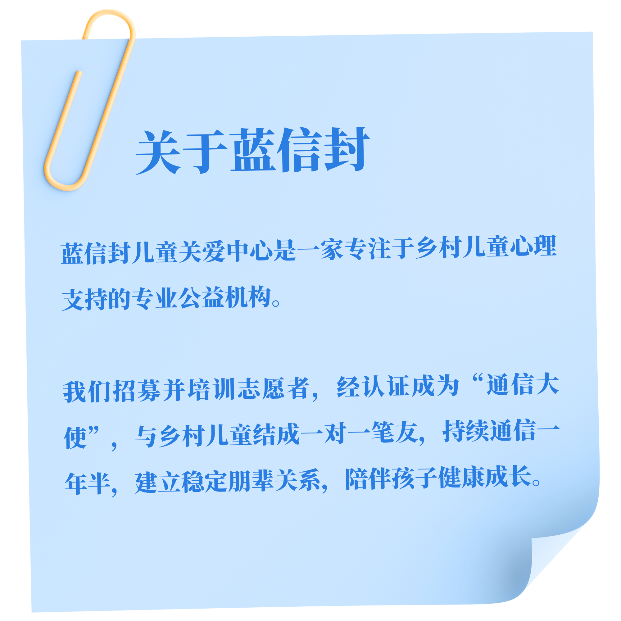请关注“ 蓝信封邮筒 ”微信公众号, 以便申请成为志愿者及进行通信
