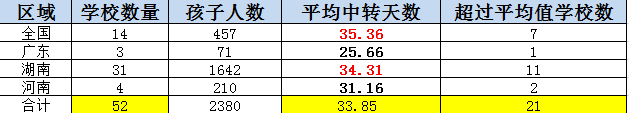 但若以21T进行分析,平均中转周期天数为33.85天,其中超过平均值的学校数为21所。