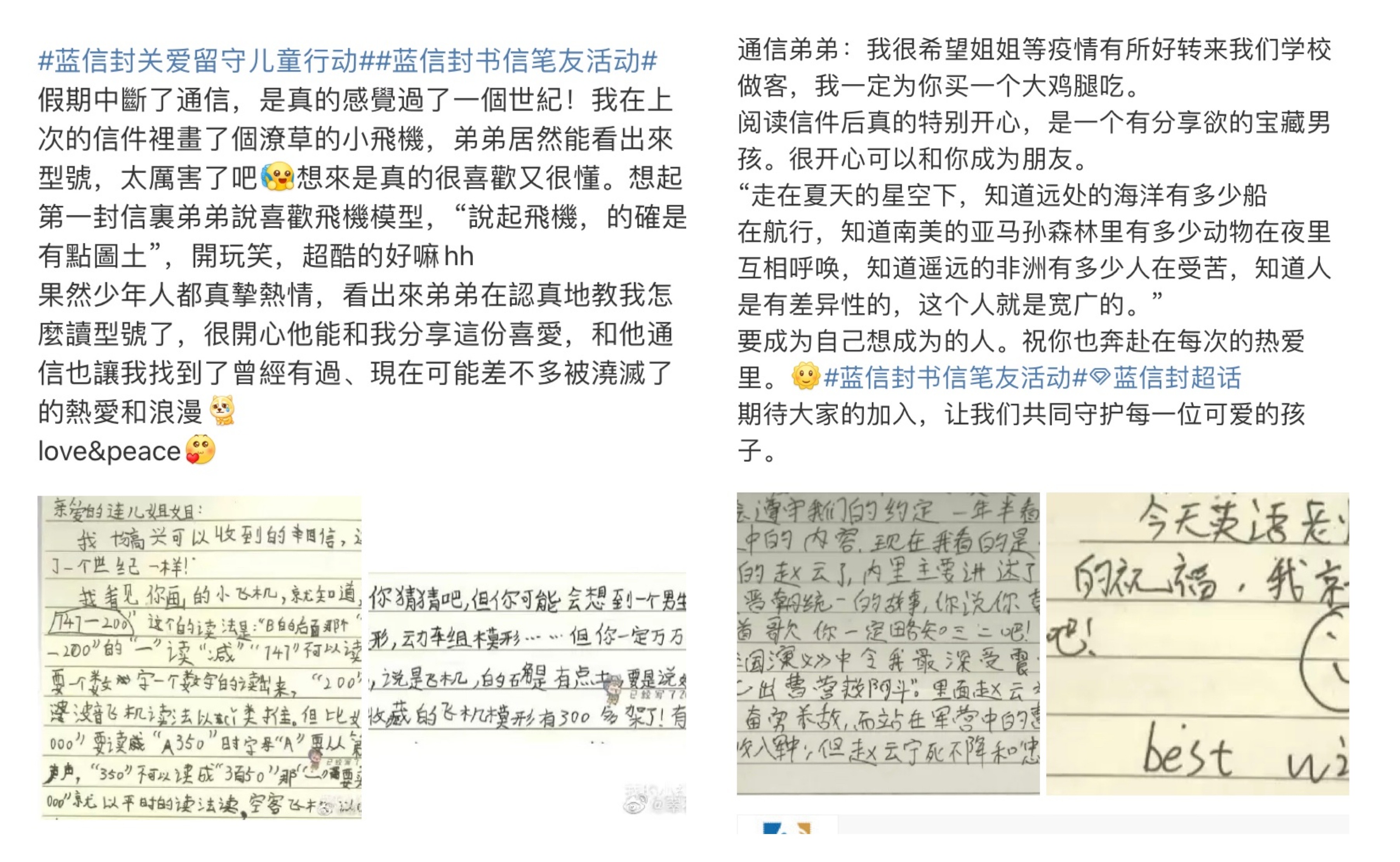 结果,无人应答。但在搜索框一搜关键词“蓝信封”,却发现通信大使们都在我们的背后,偷偷分享和孩子通信的瞬间啊……