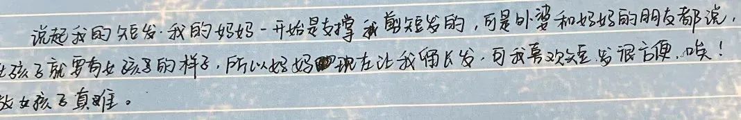 “我的妈妈一开始是支持我剪短发的,可外婆和妈妈的朋友都说,女孩子就要有女孩子的样子。唉,做女生真难。”