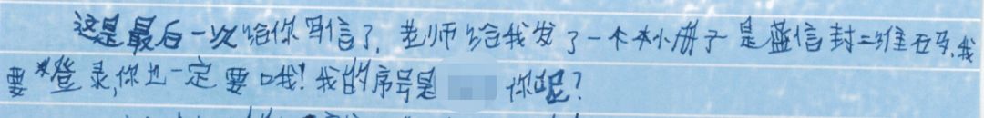 妹妹说: “这是最后一次给你写信了,老师给我发了一本小册子,是蓝信封二维码,我要登录,你也一定要哦!”