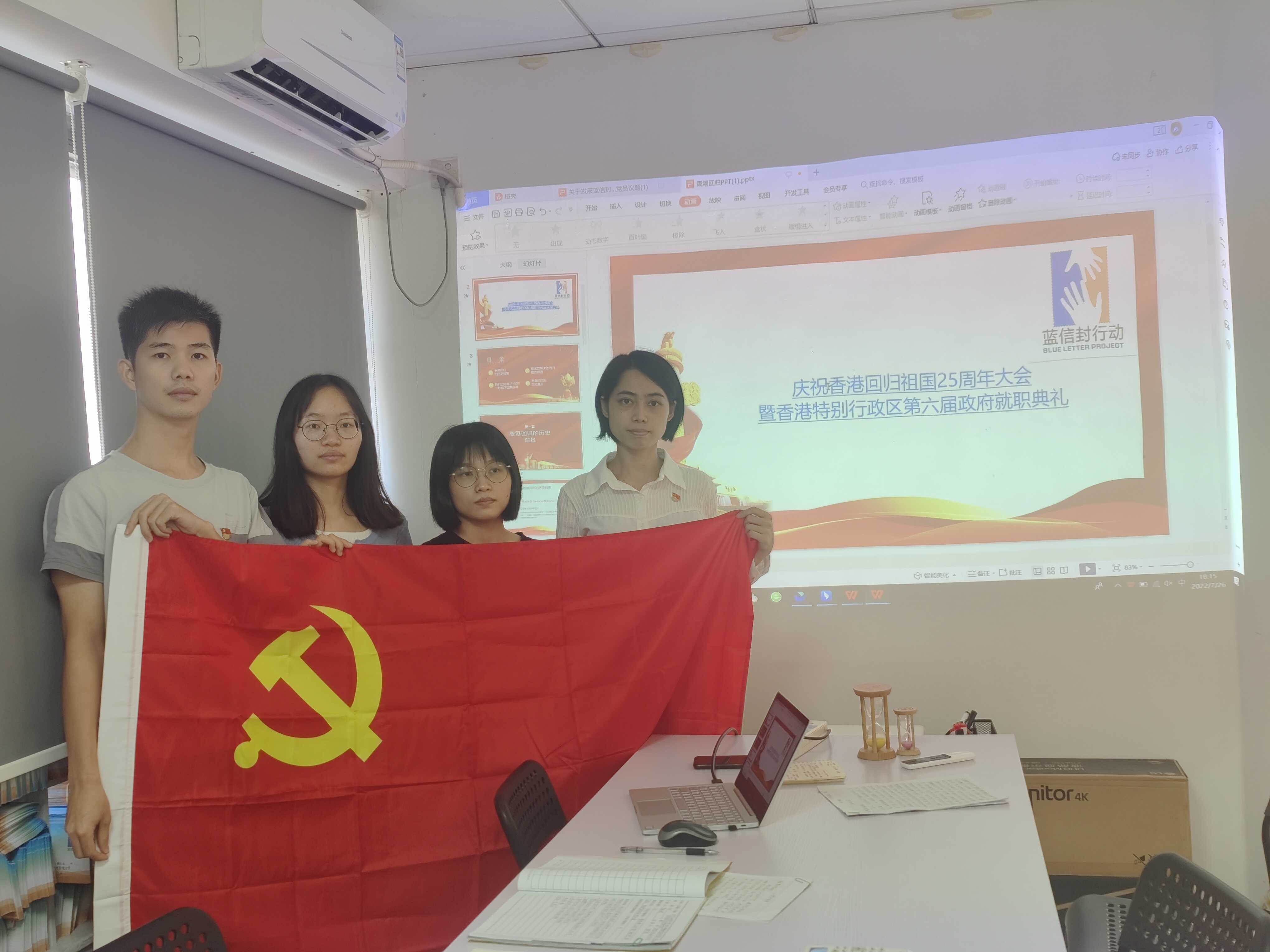 紧接着,机构的4位党员共同观看了《庆祝香港回归祖国25周年大会暨香港特别行政区第六界政府就职典礼》视频。