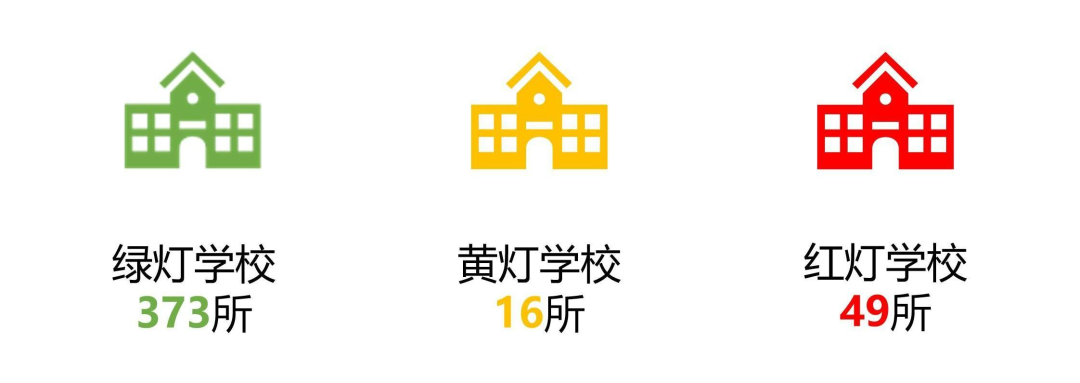 正在通信中的蓝信封项目学校共有438所,其中绿灯级别学校有373所(占85%),黄灯级别学校有16所(占4%),处于红灯级别学校有49所(占11%)。