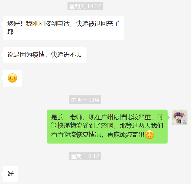 蓝信封正努力做好监测工作,同时也针对目前的信件中转状态,把未能发送至广州海珠区的信件包裹,更改为发往可接受快递的全职家里去。