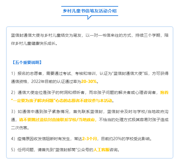 蓝信封的信件目前可寄出,但出于对孩子的健康安全着想,项目学校会担心从广州寄来的快递会有病毒传播的风险,暂拒接收。