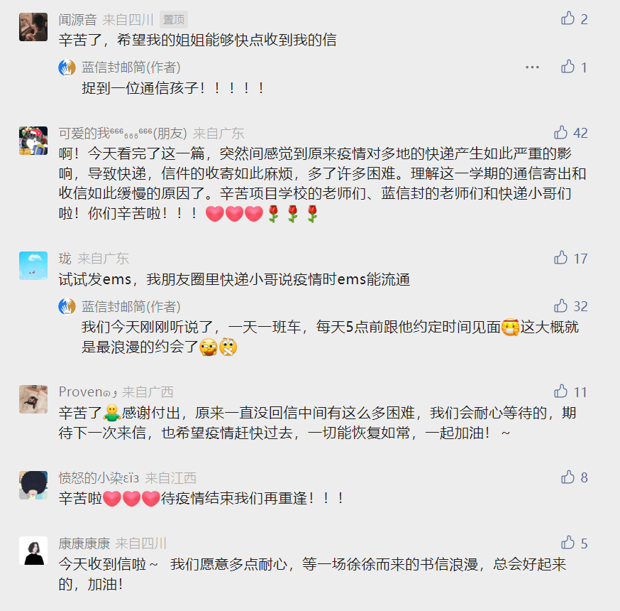 (👆蓝信封通信孩子对大学生活的好奇,信件已授权)