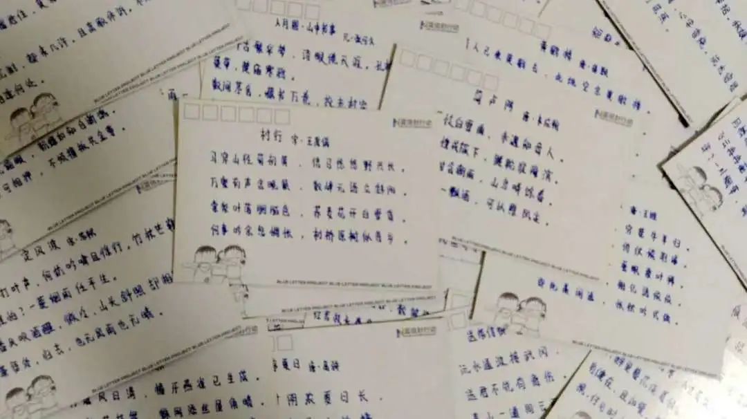 我用钢笔一笔一划地在明信片正面抄写着诗词,明信片的背面是蓝信封通信孩子们亲手画的画。在我眼里,它已经不仅仅是一个募捐载体了,而是另一种形式的陪伴——它们直接地带来收益,能够支持到留守儿童们和志愿者的书信往来。
