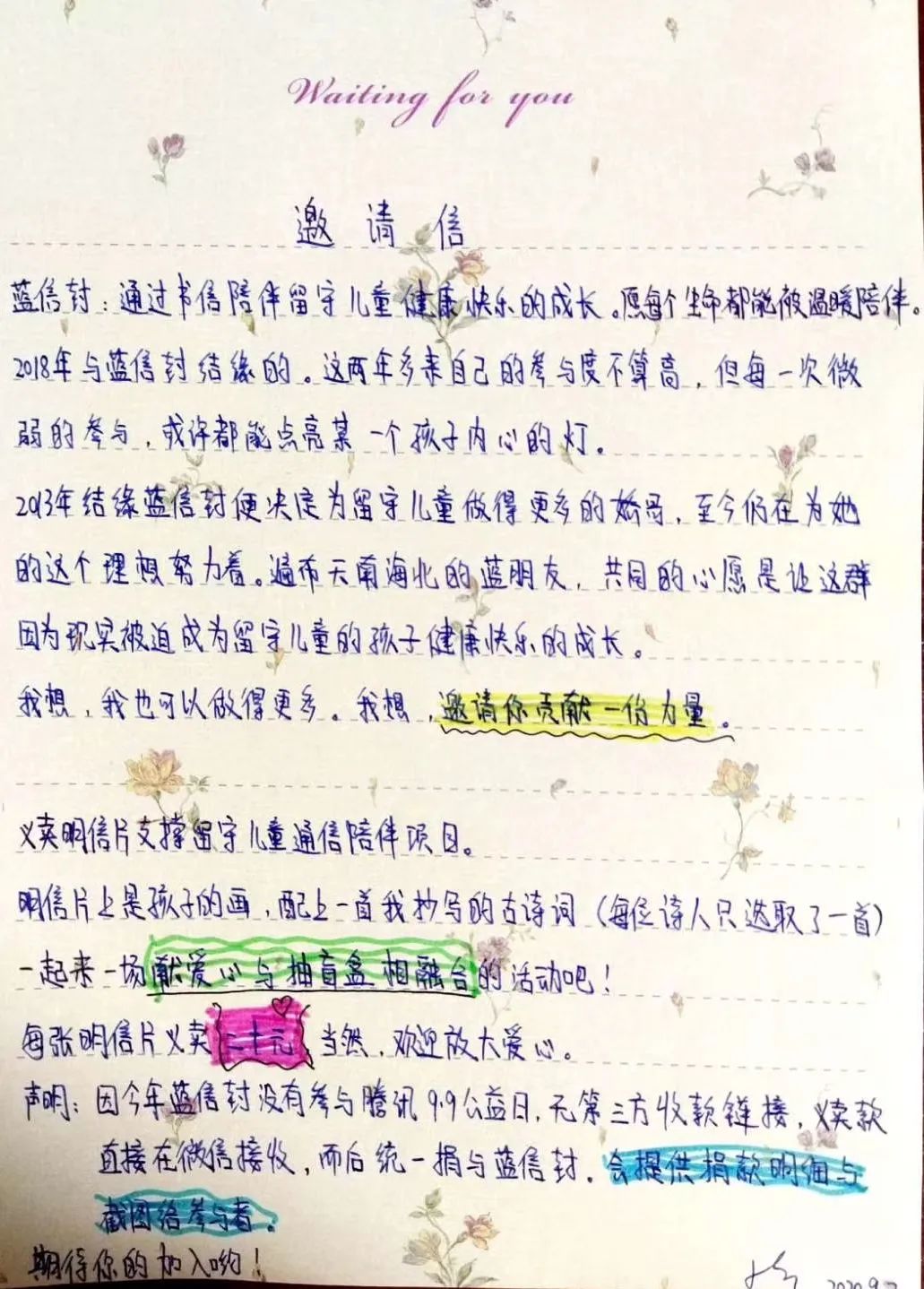 我突然想以自己的方式助力,于是写下了一封邀请信。