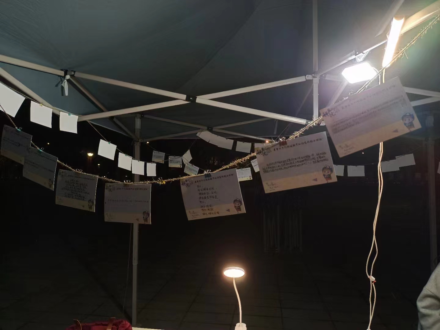 ▲ 在学校内的夜晚线下宣传摆摊