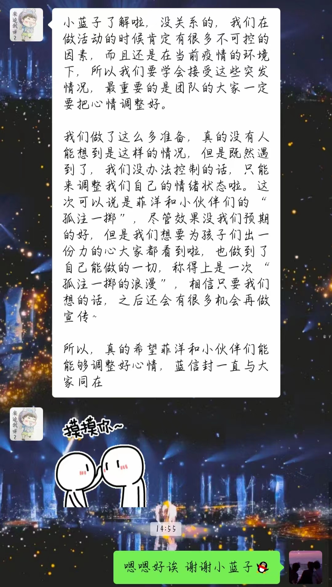 ▲ 来自小蓝子的暖心安慰和支持