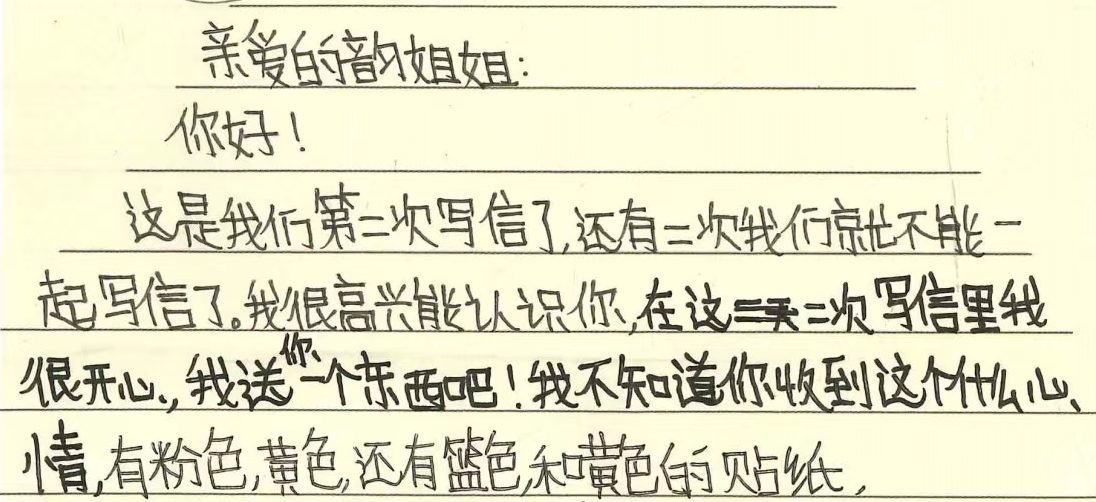 ▲ 通信孩子写给蔡韵的信