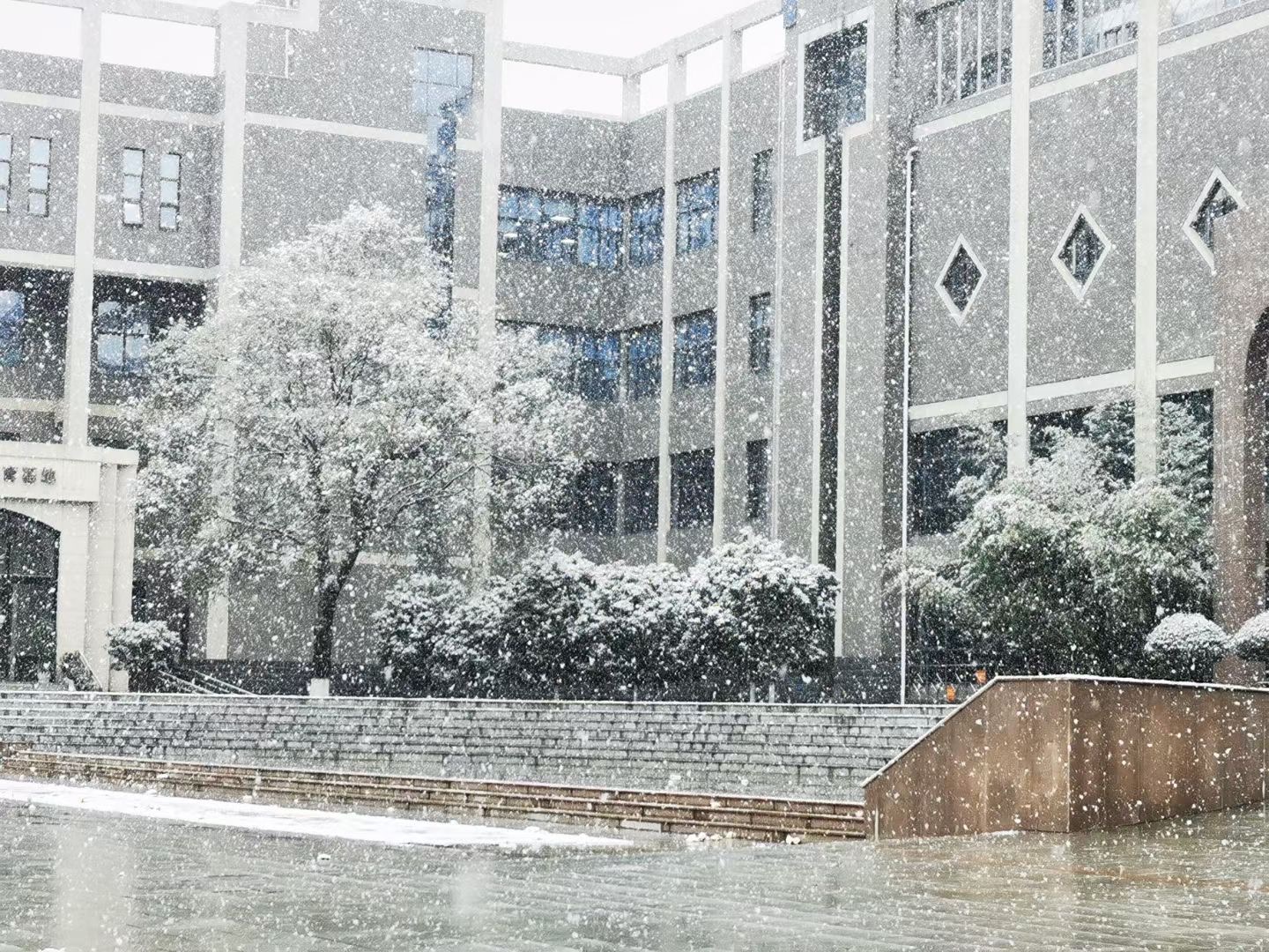 ▲ 又馨和家人分享下雪的大学校园