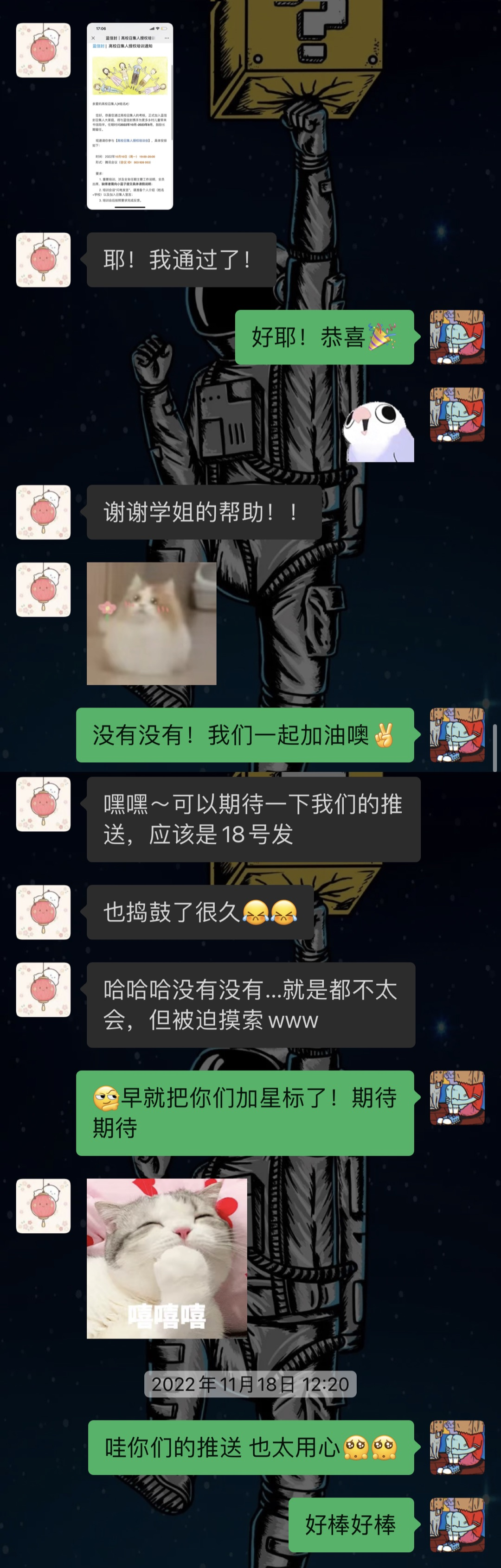 ▲ 李纪一凡团队招募到的通信大使反馈分享