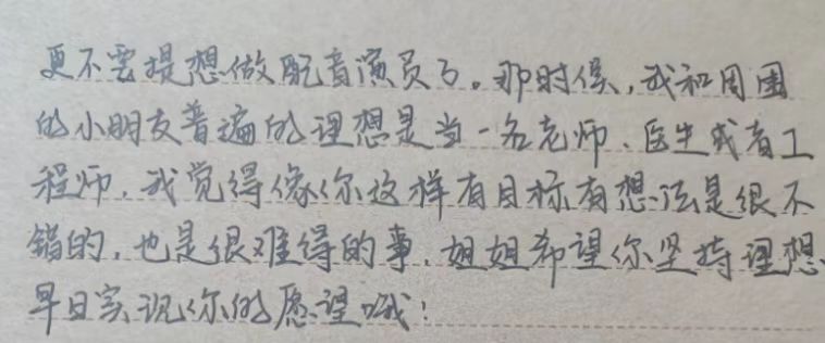 短短一年时间,通信妹妹从简短的自我介绍开始,到后面与我交换照片、成为朋友,再到最后分享秘密、倾诉烦恼,我从开始的“想做一个给别人正能量的小太阳”到后面“变成星星互相陪伴”,我们一步步深入了解对方、参与对方的生活,一起在对方的人生路上携手走过难忘的时光。