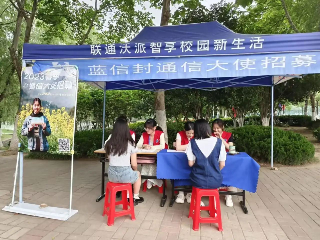 招募时间在周末,社团的小伙伴们也没有想着出去玩,而是每个人选择不同的时间去现场看看有没有需要帮忙的。值班的小伙伴们也真诚的和同学们分享自己参加蓝信封活动时的切身体会,积极的传达蓝信封活动的意义。