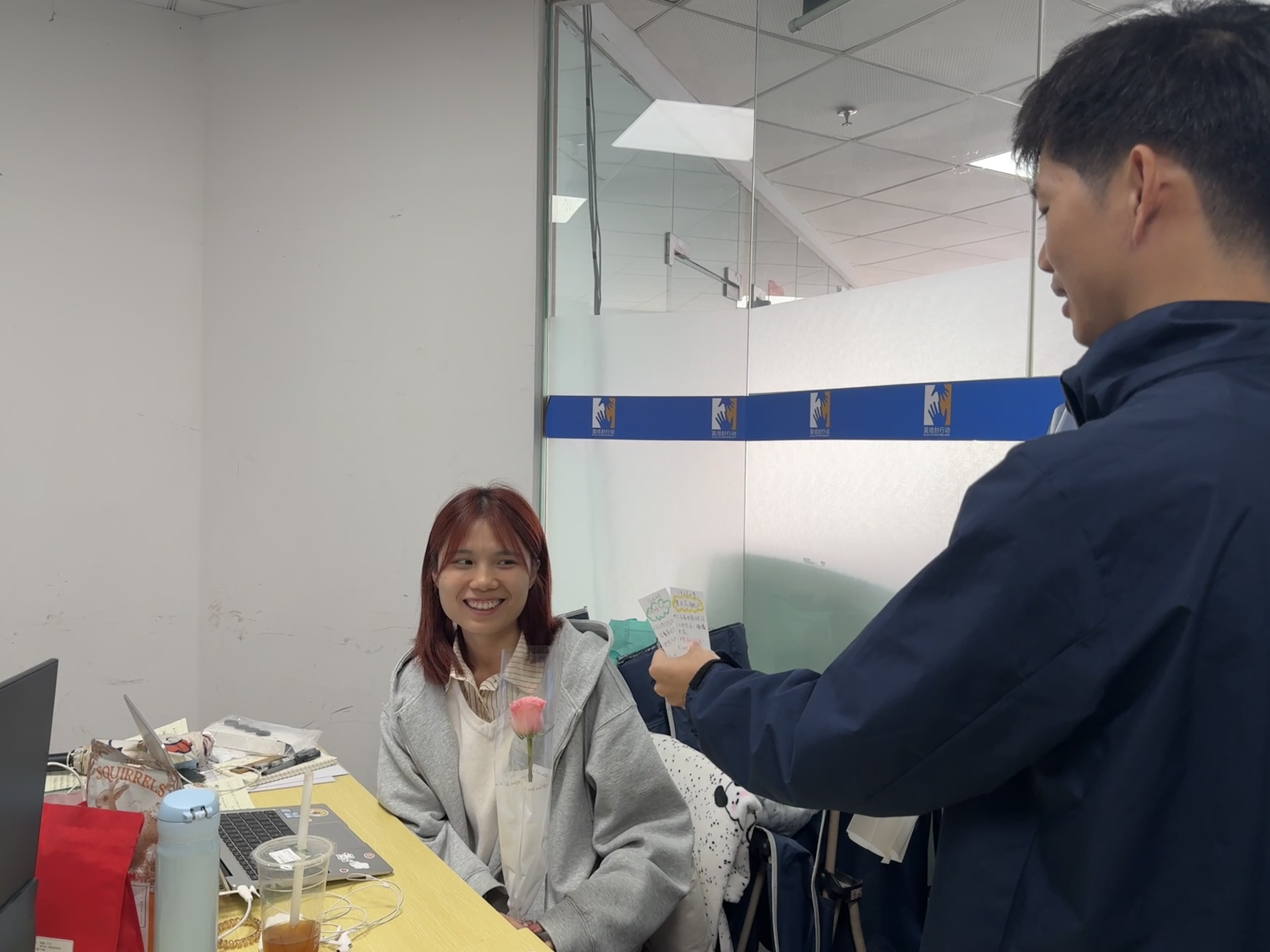 在活动当天,蓝信封党支部与蓝信封妇委会的成员们精心布置了活动现场,为女性同事们准备了精美的鲜花和美味的点心。