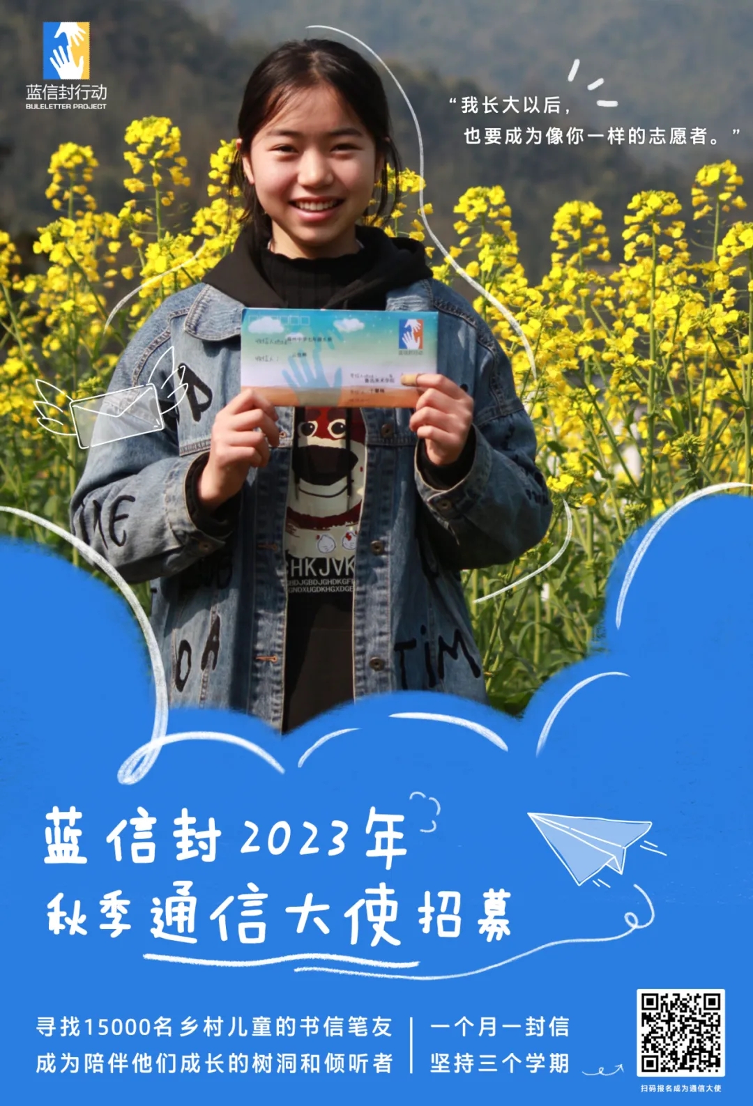 如果你也相信书信和文字的力量,也愿意成为乡村留守儿童的树洞和倾听者,给予他们一份温暖的陪伴,欢迎报名蓝信封2023年秋季通信大使(32T)!