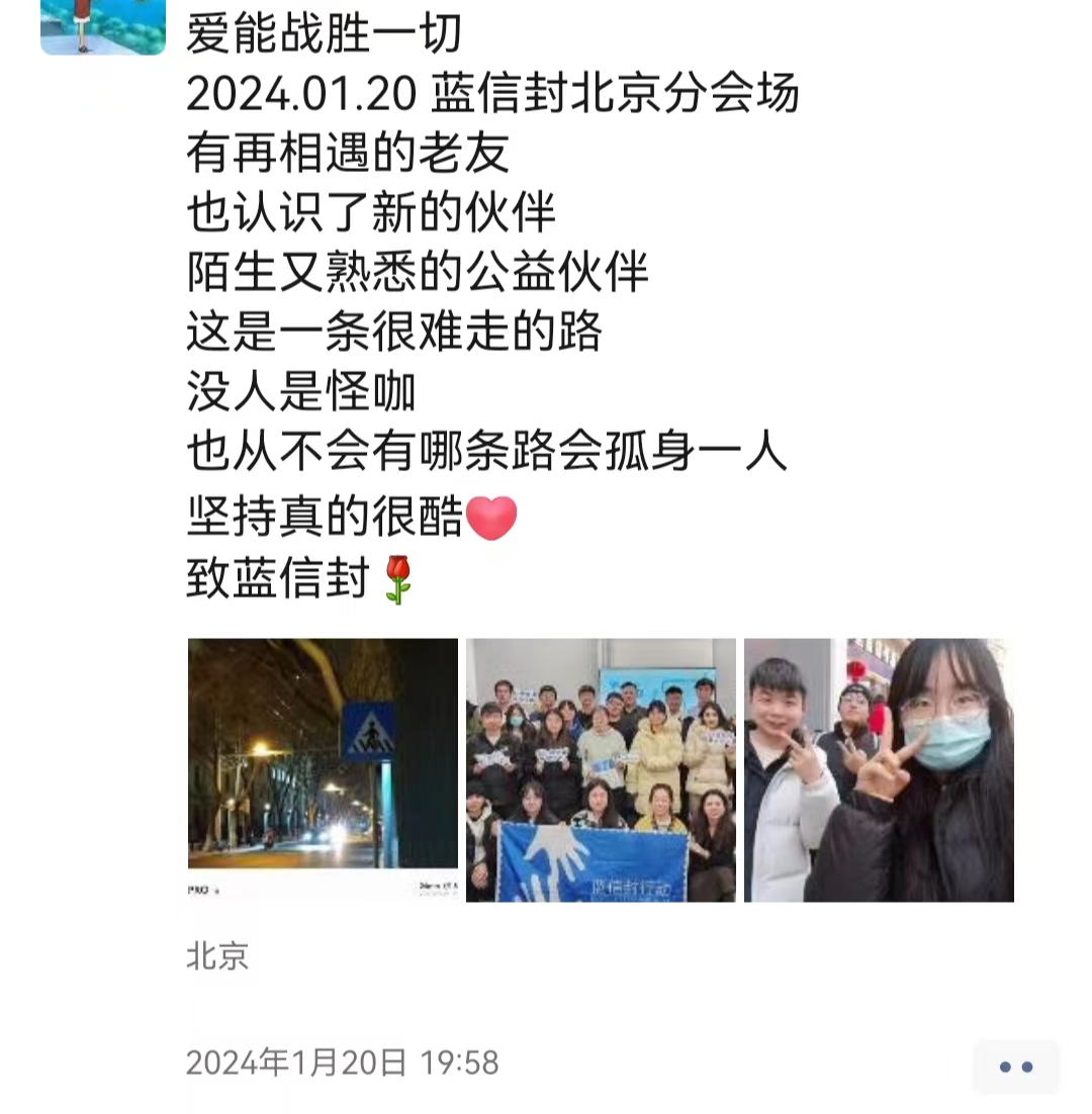 每一次相遇,不仅让我们看见更加真实的大家,更让蓝信封深刻感受到,还有许许多多同行者在为了让每一个生命都被温暖陪伴而努力着。