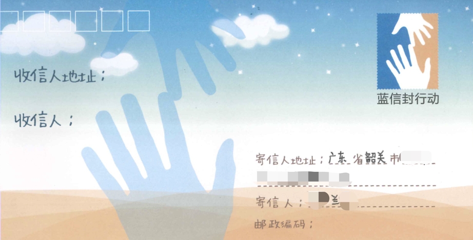 加入蓝信封公益项目其实是我第一次做志愿者,但我觉得时间刚刚好。随着越来越多的人对公益项目的支持,很多乡村学校得到了爱心人士的帮扶、学校的基础设施的建设、教学用品等硬件方面有了很大的提升。但除了这些,作为有相似成长经历的人,我感受到乡村孩子还需要深层的心理陪伴!所以我愿在这时成为一名志愿者,用一封信的时间陪一名乡村儿童的成长。