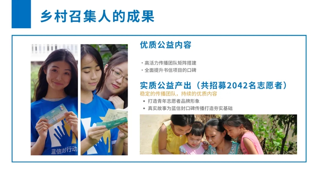 这一年来的我们收获了充实、价值和意义。在进行公益传播的过程中,我们不仅让更多人了解到了蓝信封项目,更重要的是我们自身也得到了成长。