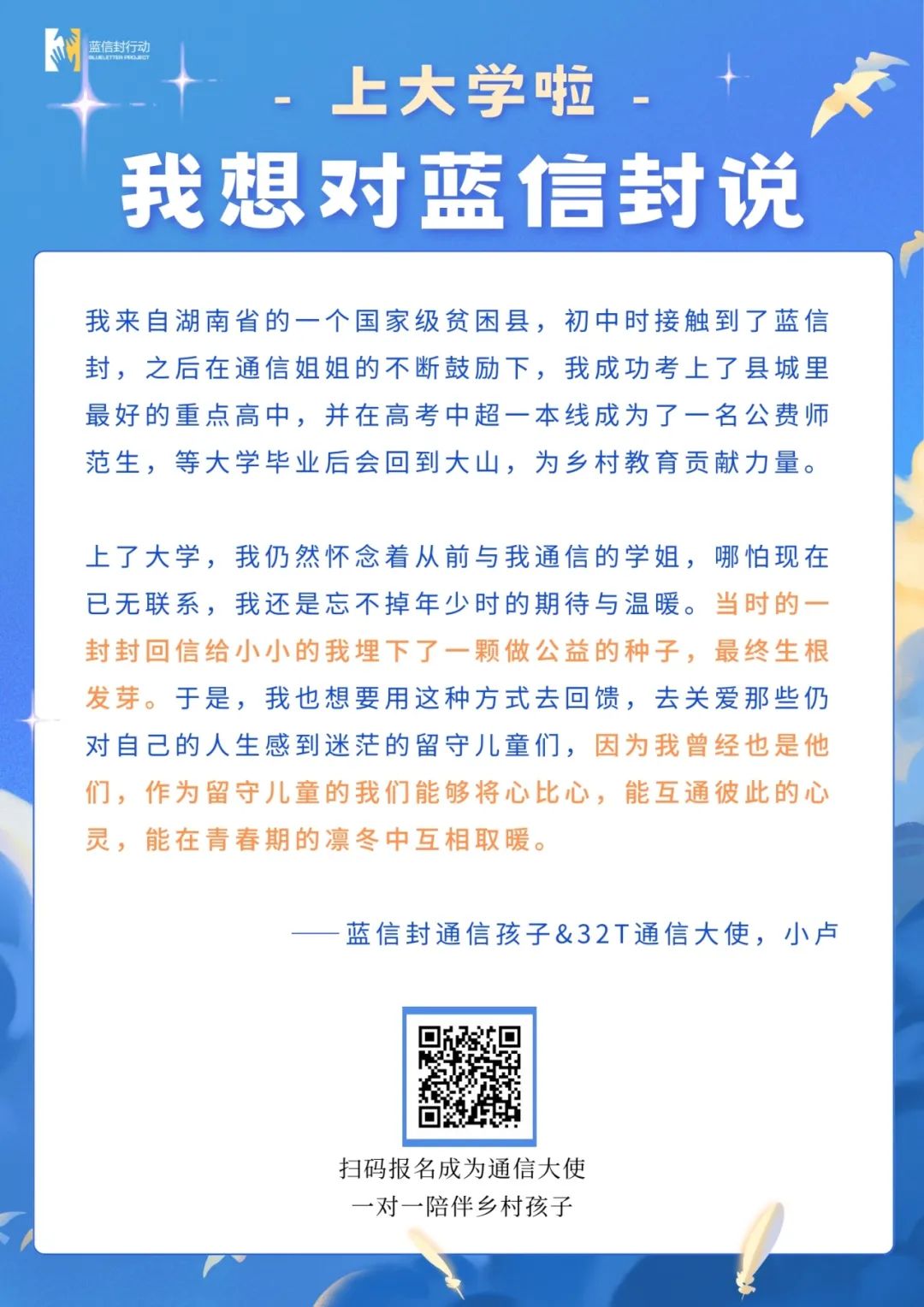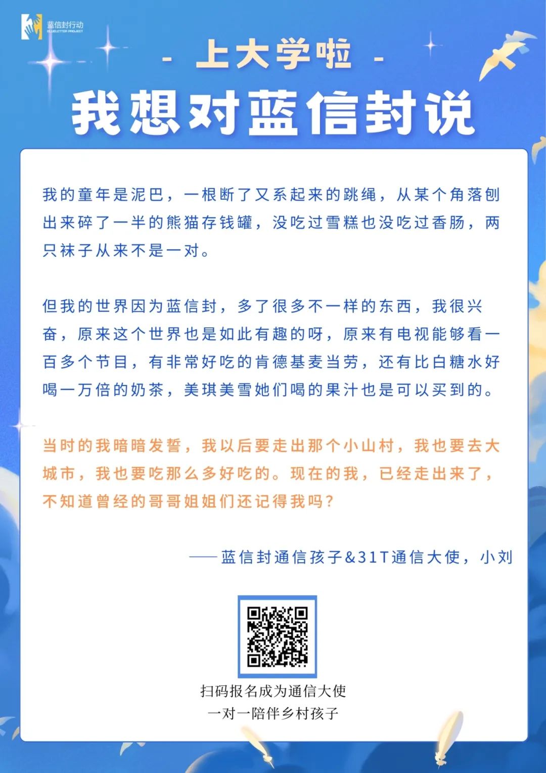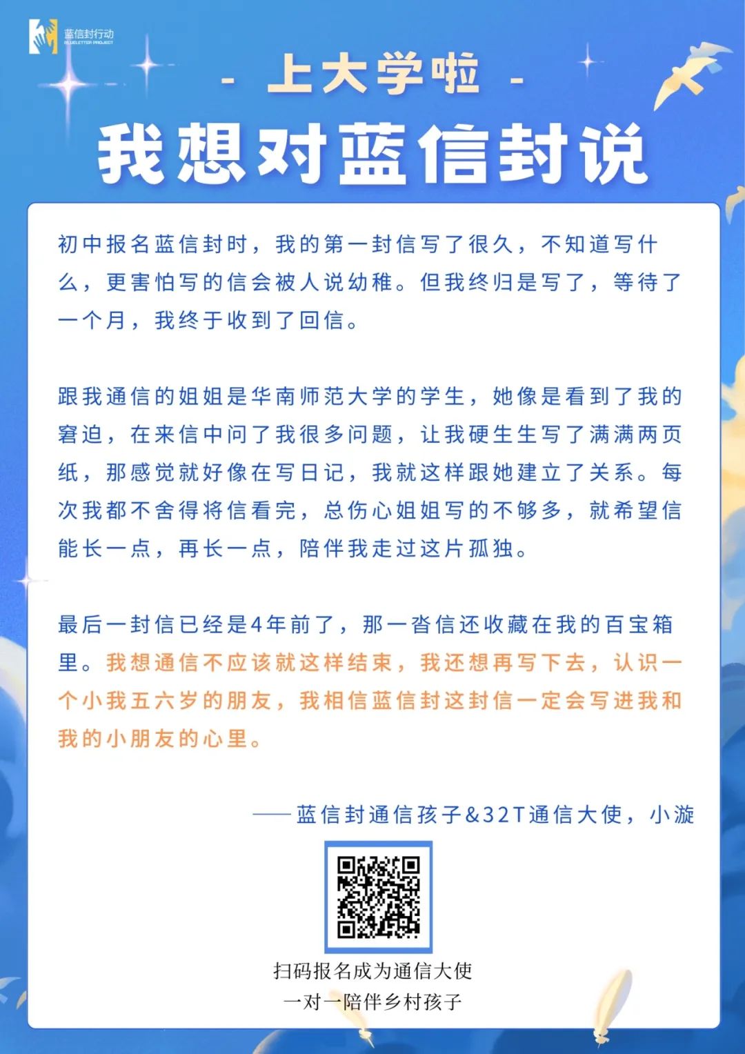 更多蓝信封通信大使故事:
